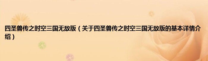 本文关于四圣兽传之时空三国无敌版的基本详情介绍就讲解完毕,希望对大家有所帮助。