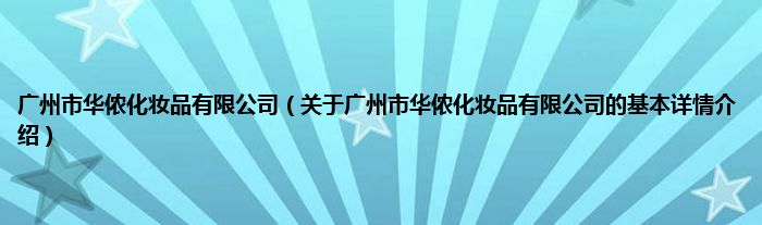 本文关于广州市华侬化妆品有限公司的基本详情介绍就讲解完毕,希望对大家有所帮助。