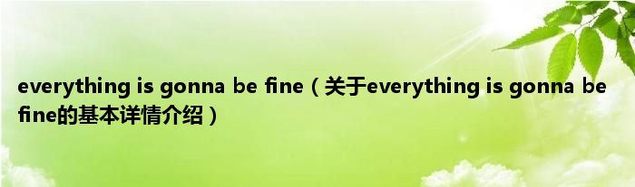 本文关于everything is gonna be fine的基本详情介绍就讲解完毕,希望对大家有所帮助。