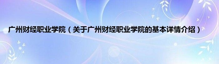 本文关于广州财经职业学院的基本详情介绍就讲解完毕,希望对大家有所帮助。