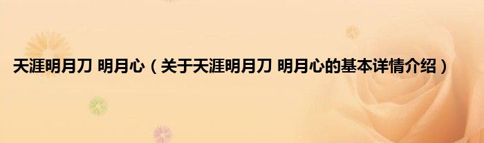 大家好我是小蝌蚪,天涯明月刀 明月心,关于天涯明月刀 明月心的基本详情介绍很多人还不知道,那么现在让我们一起来看看吧!