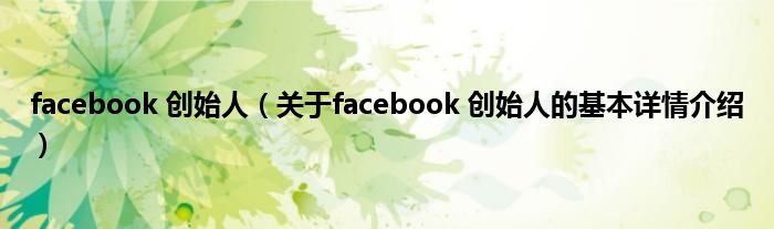 本文关于facebook 创始人的基本详情介绍就讲解完毕,希望对大家有所帮助。