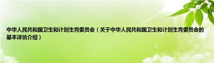 本文关于中华人民共和国卫生和计划生育委员会的基本详情介绍就讲解完毕,希望对大家有所帮助。