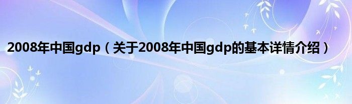 本文关于2008年中国gdp的基本详情介绍就讲解完毕,希望对大家有所帮助。