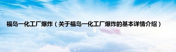 本文关于福岛一化工厂爆炸的基本详情介绍就讲解完毕,希望对大家有所帮助。