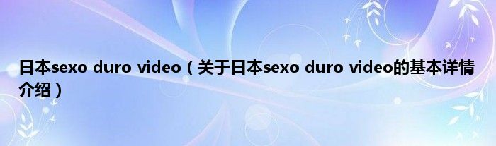 本文关于日本sexo duro video的基本详情介绍就讲解完毕,希望对大家有所帮助。