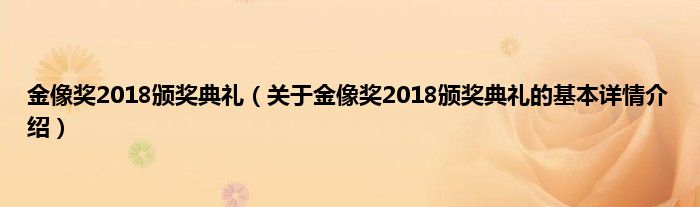 本文关于金像奖2018颁奖典礼的基本详情介绍就讲解完毕,希望对大家有所帮助。