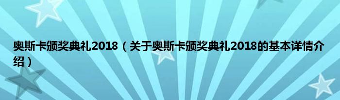 本文关于奥斯卡颁奖典礼2018的基本详情介绍就讲解完毕,希望对大家有所帮助。
