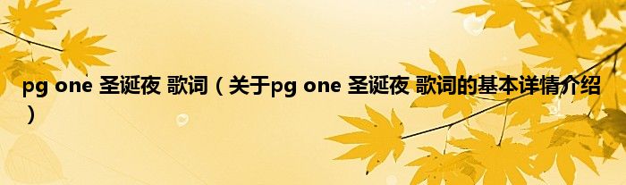 本文关于pg one 圣诞夜 歌词的基本详情介绍就讲解完毕,希望对大家有所帮助。