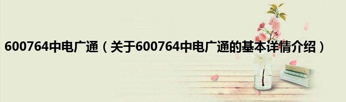 本文关于600764中电广通的基本详情介绍就讲解完毕,希望对大家有所帮助。