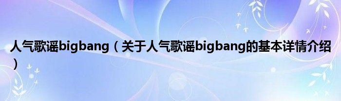 本文关于人气歌谣bigbang的基本详情介绍就讲解完毕,希望对大家有所帮助。