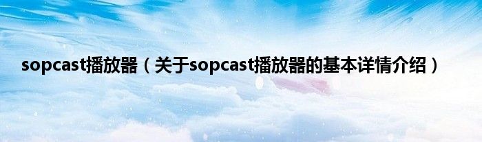 本文关于sopcast播放器的基本详情介绍就讲解完毕,希望对大家有所帮助。