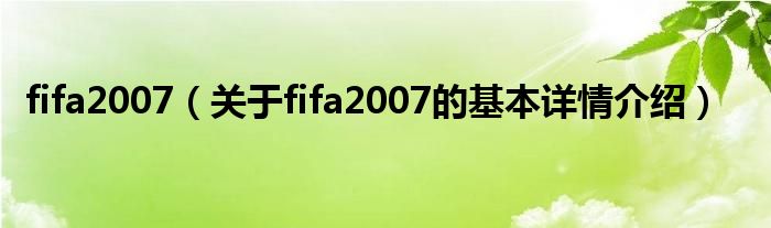 本文关于fifa2007的基本详情介绍就讲解完毕,希望对大家有所帮助。