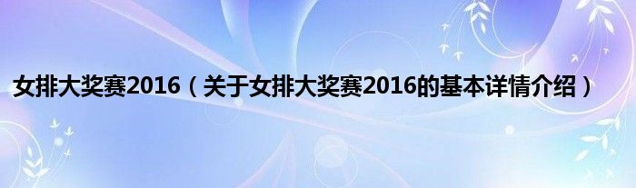 本文关于女排大奖赛2016的基本详情介绍就讲解完毕,希望对大家有所帮助。