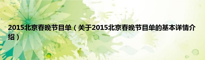 本文关于2015北京春晚节目单的基本详情介绍就讲解完毕,希望对大家有所帮助。