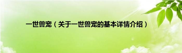 本文关于一世兽宠的基本详情介绍就讲解完毕,希望对大家有所帮助。