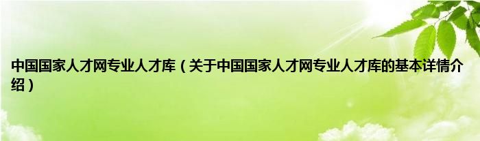 本文关于中国国家人才网专业人才库的基本详情介绍就讲解完毕,希望对大家有所帮助。