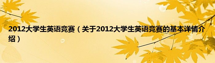 本文关于2012大学生英语竞赛的基本详情介绍就讲解完毕,希望对大家有所帮助。