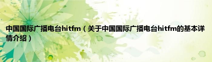 本文关于中国国际广播电台hitfm的基本详情介绍就讲解完毕,希望对大家有所帮助。