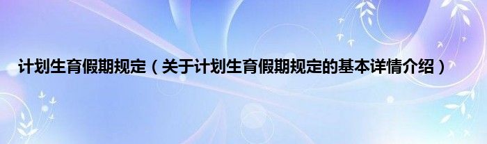 本文关于计划生育假期规定的基本详情介绍就讲解完毕,希望对大家有所帮助。