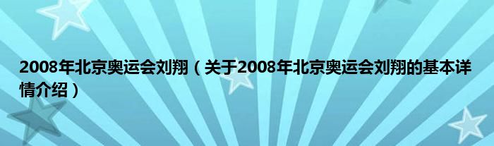 本文关于2008年北京奥运会刘翔的基本详情介绍就讲解完毕,希望对大家有所帮助。