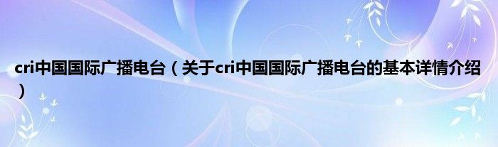 本文关于cri中国国际广播电台的基本详情介绍就讲解完毕,希望对大家有所帮助。
