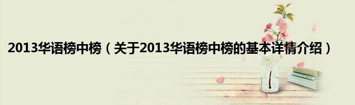 本文关于2013华语榜中榜的基本详情介绍就讲解完毕,希望对大家有所帮助。