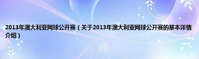 本文关于2013年澳大利亚网球公开赛的基本详情介绍就讲解完毕,希望对大家有所帮助。
