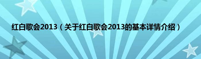 本文关于红白歌会2013的基本详情介绍就讲解完毕,希望对大家有所帮助。