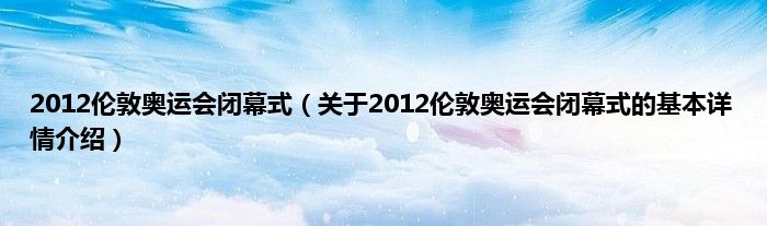 本文关于2012伦敦奥运会闭幕式的基本详情介绍就讲解完毕,希望对大家有所帮助。