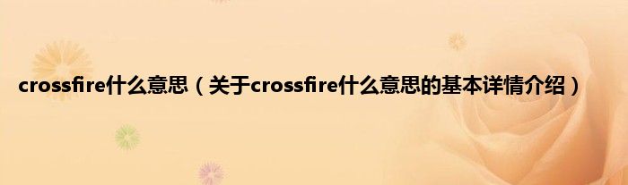 本文关于crossfire什么意思的基本详情介绍就讲解完毕,希望对大家有所帮助。