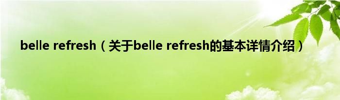 本文关于belle refresh的基本详情介绍就讲解完毕,希望对大家有所帮助。