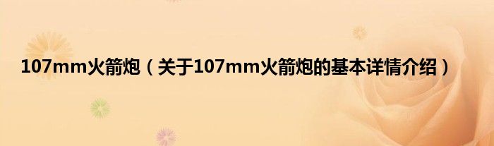 本文关于107mm火箭炮的基本详情介绍就讲解完毕,希望对大家有所帮助。