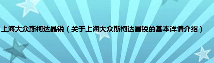 本文关于上海大众斯柯达晶锐的基本详情介绍就讲解完毕,希望对大家有所帮助。