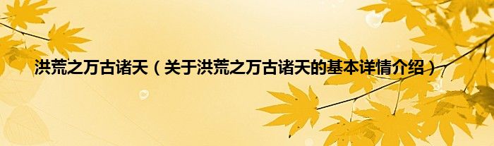 本文关于洪荒之万古诸天的基本详情介绍就讲解完毕,希望对大家有所帮助。