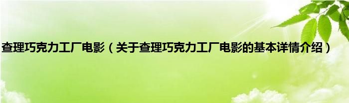 本文关于查理巧克力工厂电影的基本详情介绍就讲解完毕,希望对大家有所帮助。