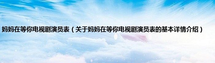 本文关于妈妈在等你电视剧演员表的基本详情介绍就讲解完毕,希望对大家有所帮助。
