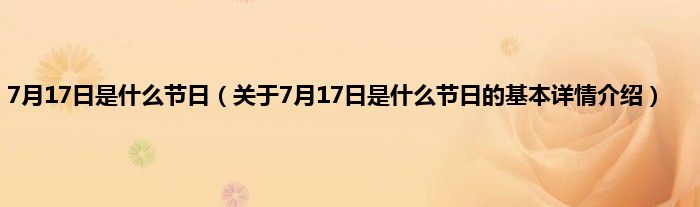 本文关于7月17日是什么节日的基本详情介绍就讲解完毕,希望对大家有所帮助。