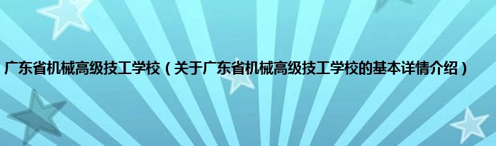 本文关于广东省机械高级技工学校的基本详情介绍就讲解完毕,希望对大家有所帮助。