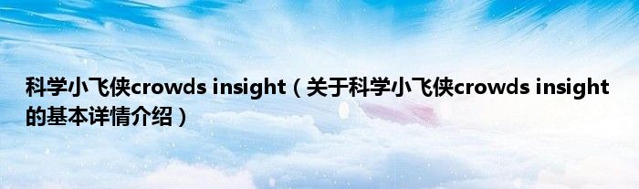 大家好我是小蝌蚪,科学小飞侠crowds insight,关于科学小飞侠crowds insight的基本详情介绍很多人还不知道,那么现在让我们一起来看看吧!