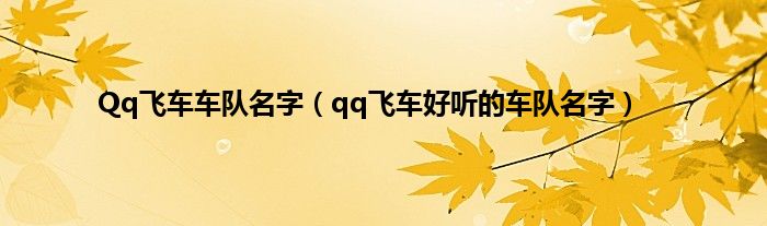以上就是【Qq飞车车队名字,qq飞车好听的车队名字】相关内容。