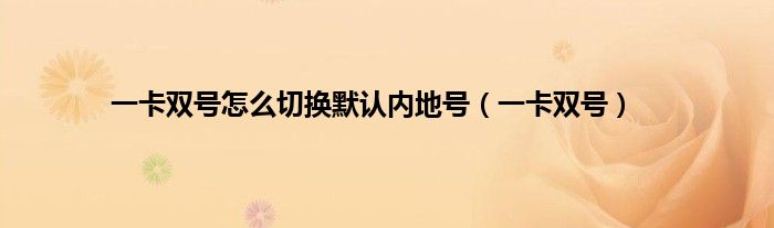 以上就是【一卡双号怎么切换默认内地号,一卡双号】相关内容。