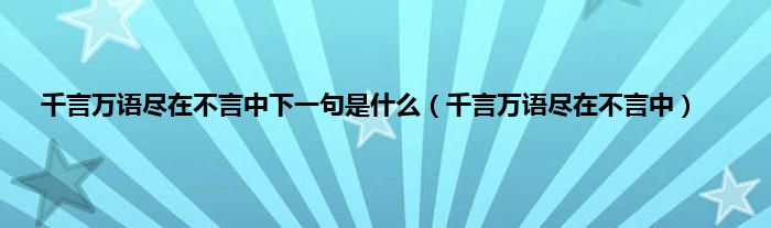 大家好,小问来为大家解答以上问题。千言万语尽在不言中下一句是什么,千言万语尽在不言中这个很多人还不知道,现在让我们一起来看看吧!
