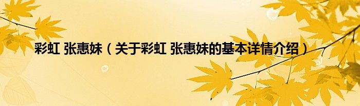本文关于彩虹 张惠妹的基本详情介绍就讲解完毕,希望对大家有所帮助。