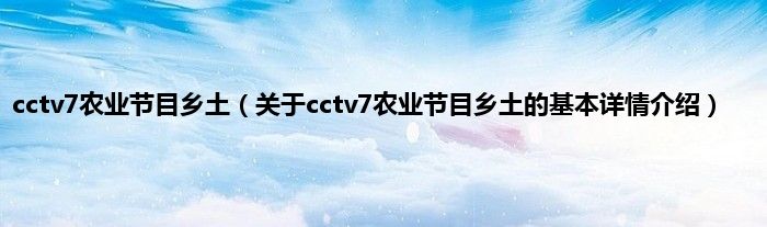 本文关于cctv7农业节目乡土的基本详情介绍就讲解完毕,希望对大家有所帮助。