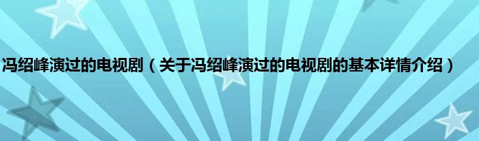 本文关于冯绍峰演过的电视剧的基本详情介绍就讲解完毕,希望对大家有所帮助。