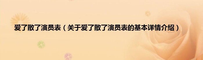 本文关于爱了散了演员表的基本详情介绍就讲解完毕,希望对大家有所帮助。