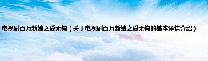 本文关于电视剧百万新娘之爱无悔的基本详情介绍就讲解完毕,希望对大家有所帮助。