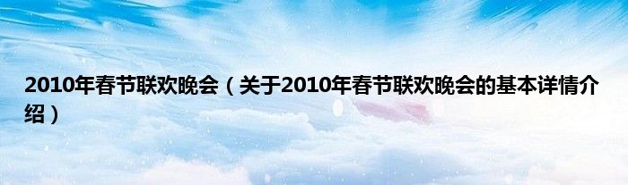 本文关于2010年春节联欢晚会的基本详情介绍就讲解完毕,希望对大家有所帮助。