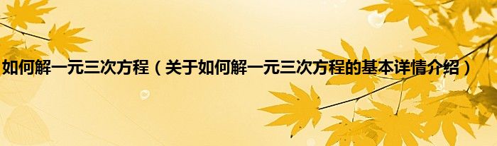 本文关于如何解一元三次方程的基本详情介绍就讲解完毕,希望对大家有所帮助。